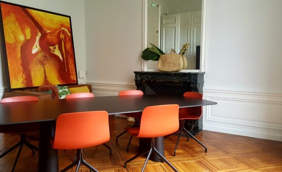 Niché au cœur de la place de New York, la rénovation de ce bâtiment en espace de coworking a permis de retrouver l’ensemble des prestations caractéristiques de celui-ci. Les boiseries pierre de façade, verrière, escalier en pierre, ont entièrement été travaillés afin de leur redonner leur éclat d’origine. Le projet permet maintenant de proposer des prestations telles que la location de salles de réunions, de bureaux privés et d’espaces évènementiels associés à un jardin privé.