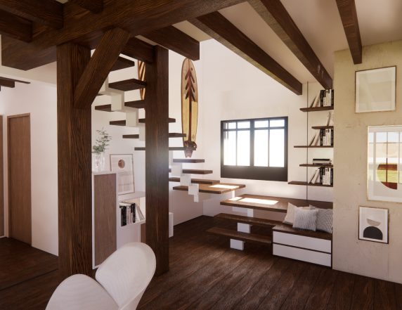 Basé sur une maison landaise des années 30, ce projet a été réalisé de façon à conserver l’authenticité de cette maison familiale. La surélévation intégrée au projet a été pensée de telle sorte à conserver les traits atypiques : le porche, une charpente, asymétrique, les jambes de force. Cette construction en bois présente toutes les caractéristiques d’une maison traditionnelle avec les performances énergétiques d’une maison d’aujourd'hui.