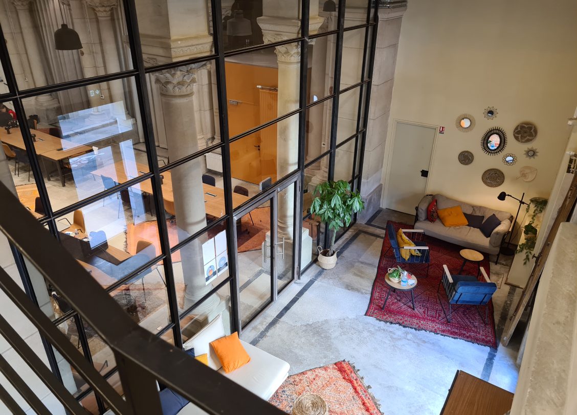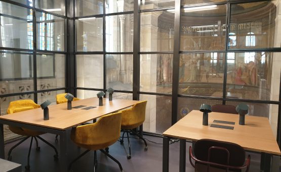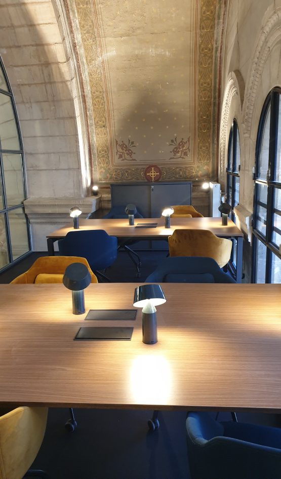 Edifice religieux datant du XIXème siècle, de style Neo-Roman, cette chapelle se caractérise par ses fenêtres en vitrail, ses voûtes en berceau et ses hauteurs sous-plafond monumentales. Le projet consiste à intégrer un espace vivant et partagé tout en conservant les caractéristiques de ce lieu unique. L’ensemble des structures métalliques ont été réalisées dans le but de mettre encore plus en valeur la magnificence du lieu. Par ce travail, ce lieu peut aujourd’hui accueillir, des évènements privatifs, séminaires d’entreprises de façon ponctuelle et des entreprises au sein des bureaux privatifs.
