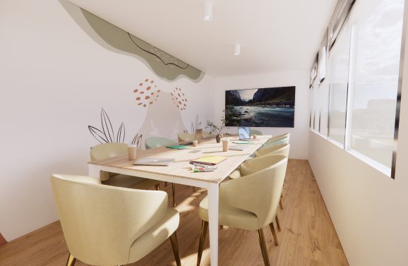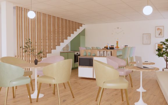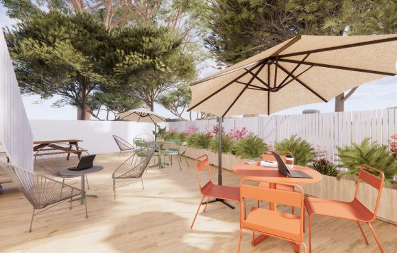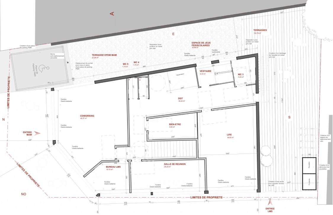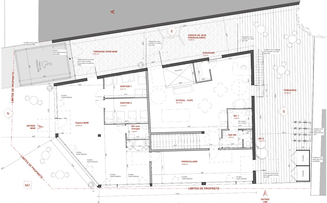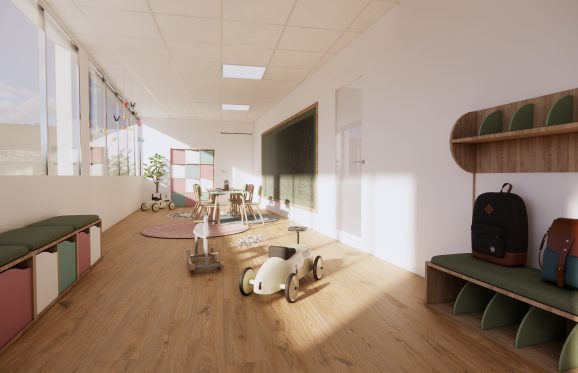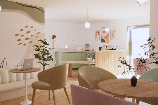 allant du type bureau en open space à un espace MAM et périscolaire. Un extérieur vient compléter celui-ci, permettant l’accueil d’évènements professionnels.